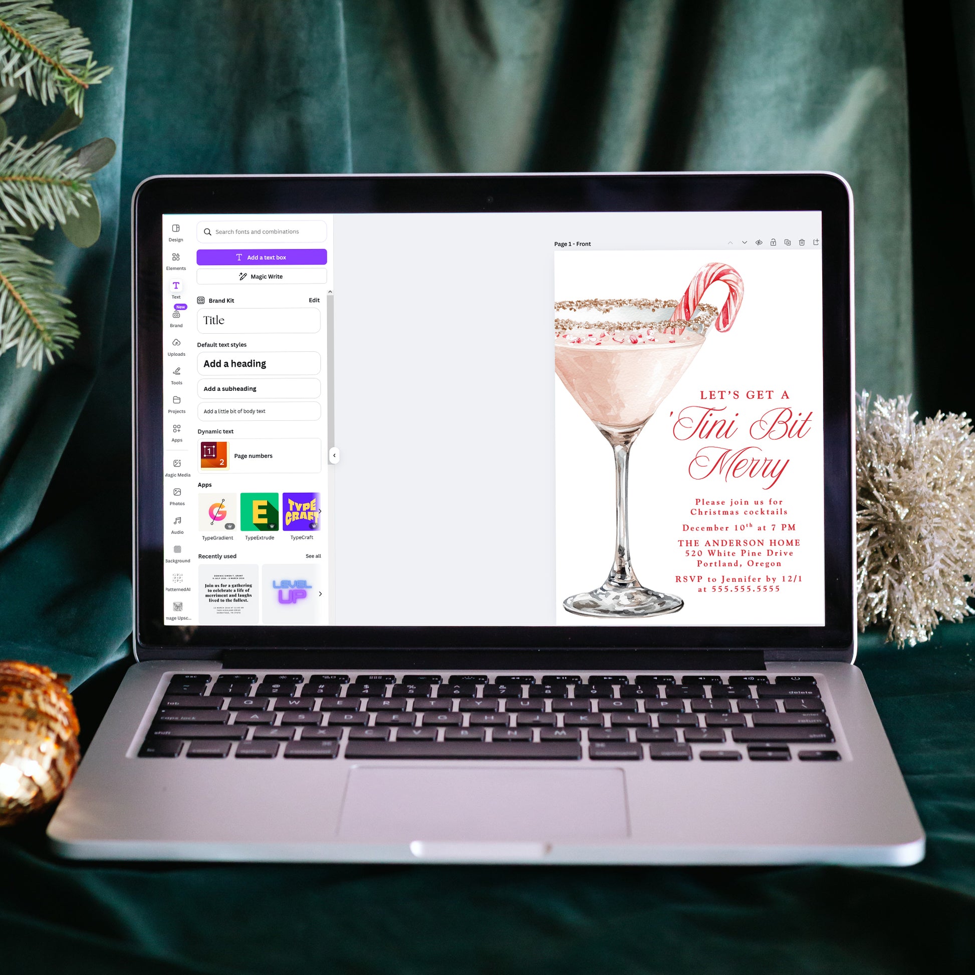 'Tini Bit Merry Candy Cane Martini Christmas Party Invitation | Canva Template