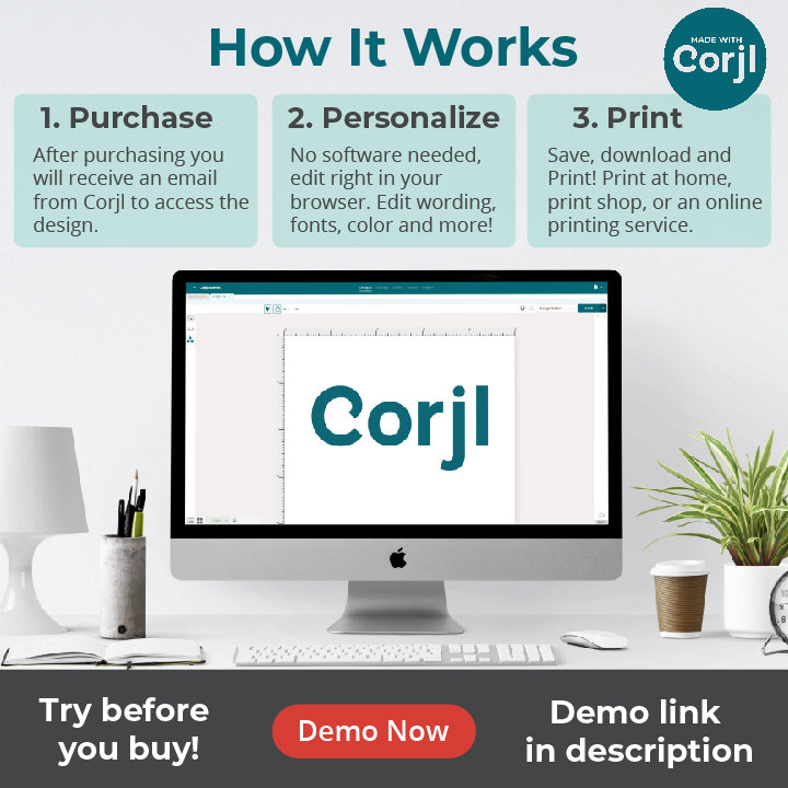 This digital download includes editable templates you can personalize directly in Corjl — no software needed! Easily edit text, adjust fonts and colors, and customize spacing to make the design uniquely yours. You’ll get instant access after purchase and can begin editing right away.